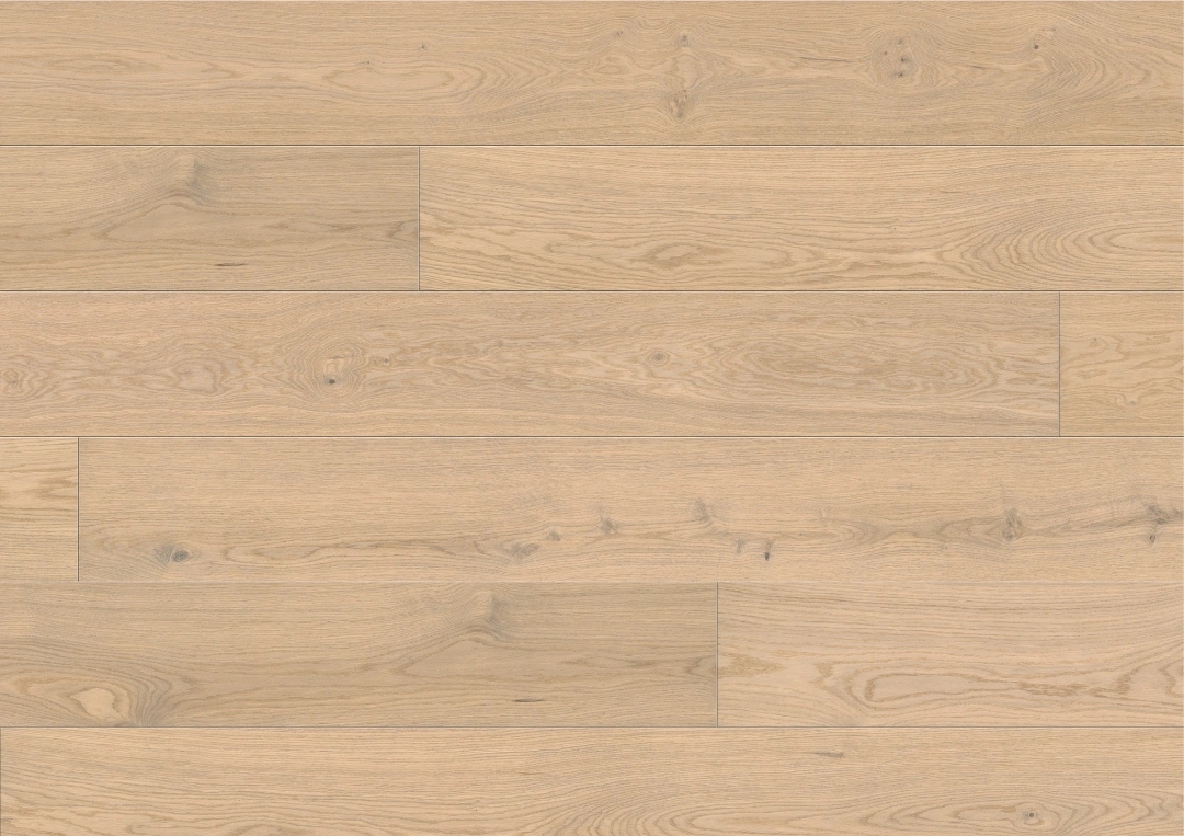 Široke hrastove deske ustvarjajo odprt, eleganten videz prostora in poudarijo naravno strukturo lesa. Primerne so za sodobne interierje, kjer pride do izraza večji format in mirnejši vzorec.